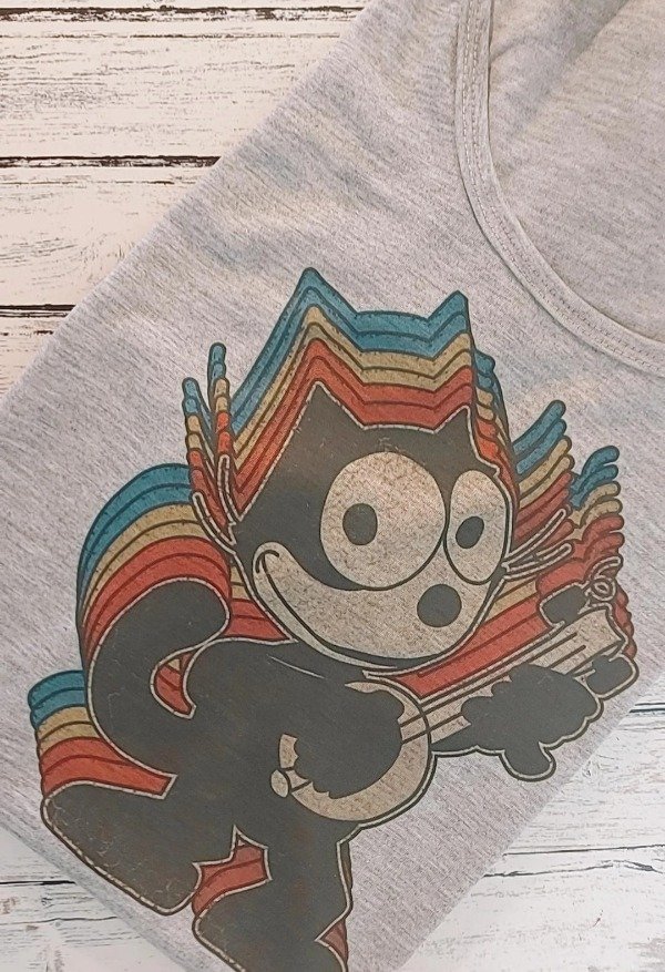 Remera Mujer Gato Felix Gris